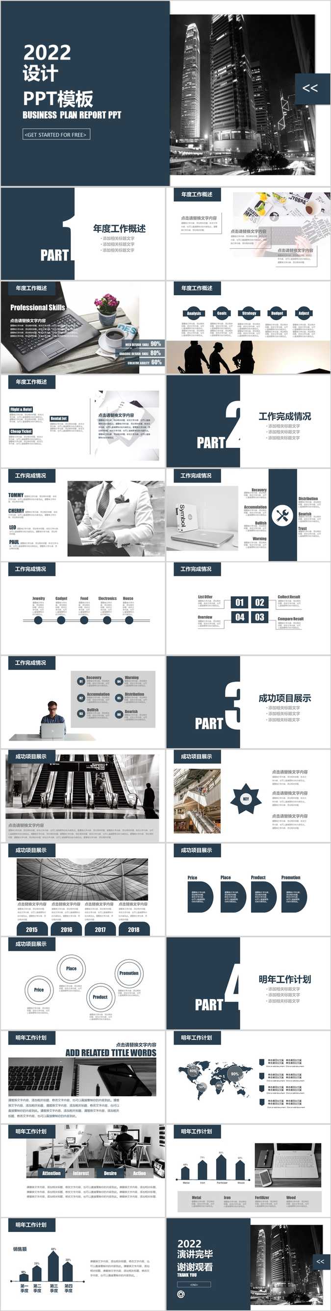 【免费】简约墨蓝色设计PPT模板