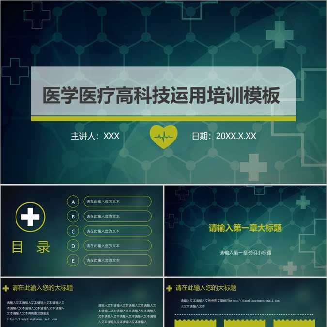 【免费】深绿色医学医疗高科技运用培训PPT模板