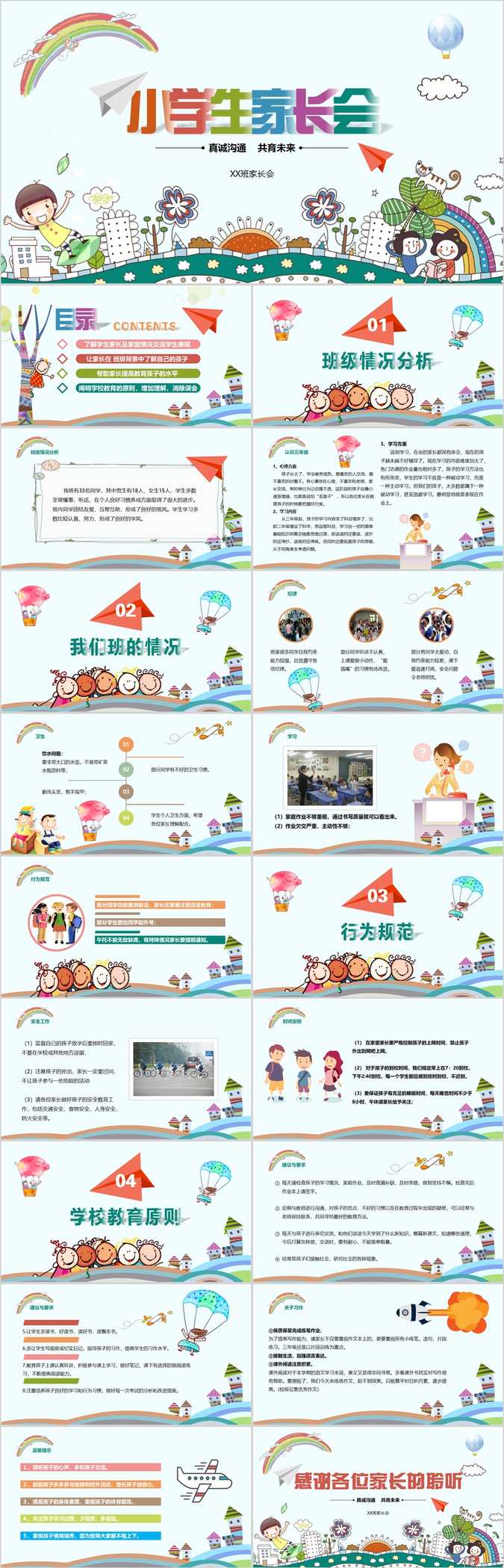 【免费】童趣可爱小学生家长会PPT模板