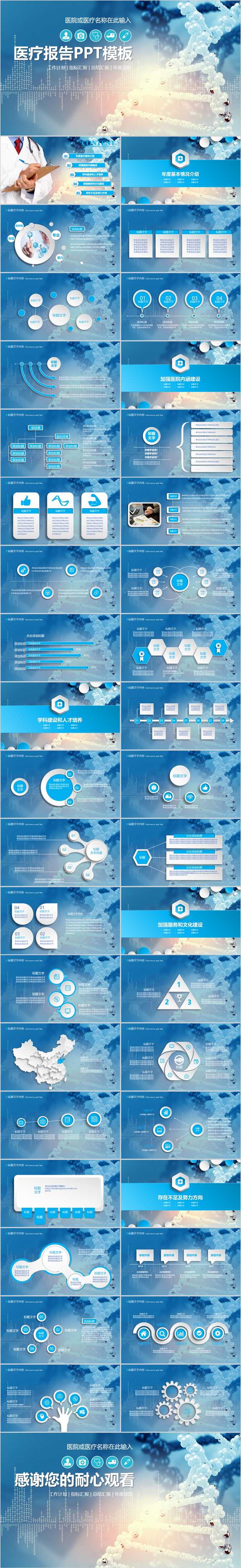 【免费】蓝色医疗报告PPT模板
