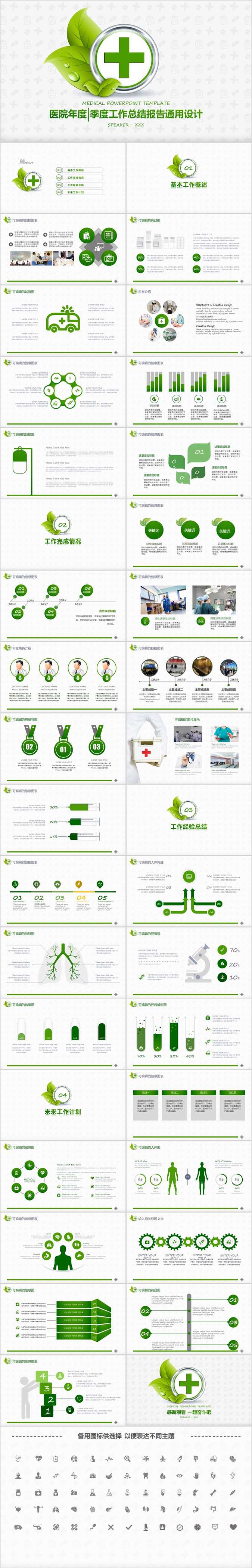 【免费】浅绿色医院年度季度工作工作报告PPT模板