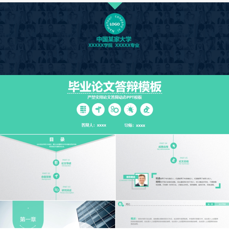 【免费】绿色毕业论文答辩PPT模板