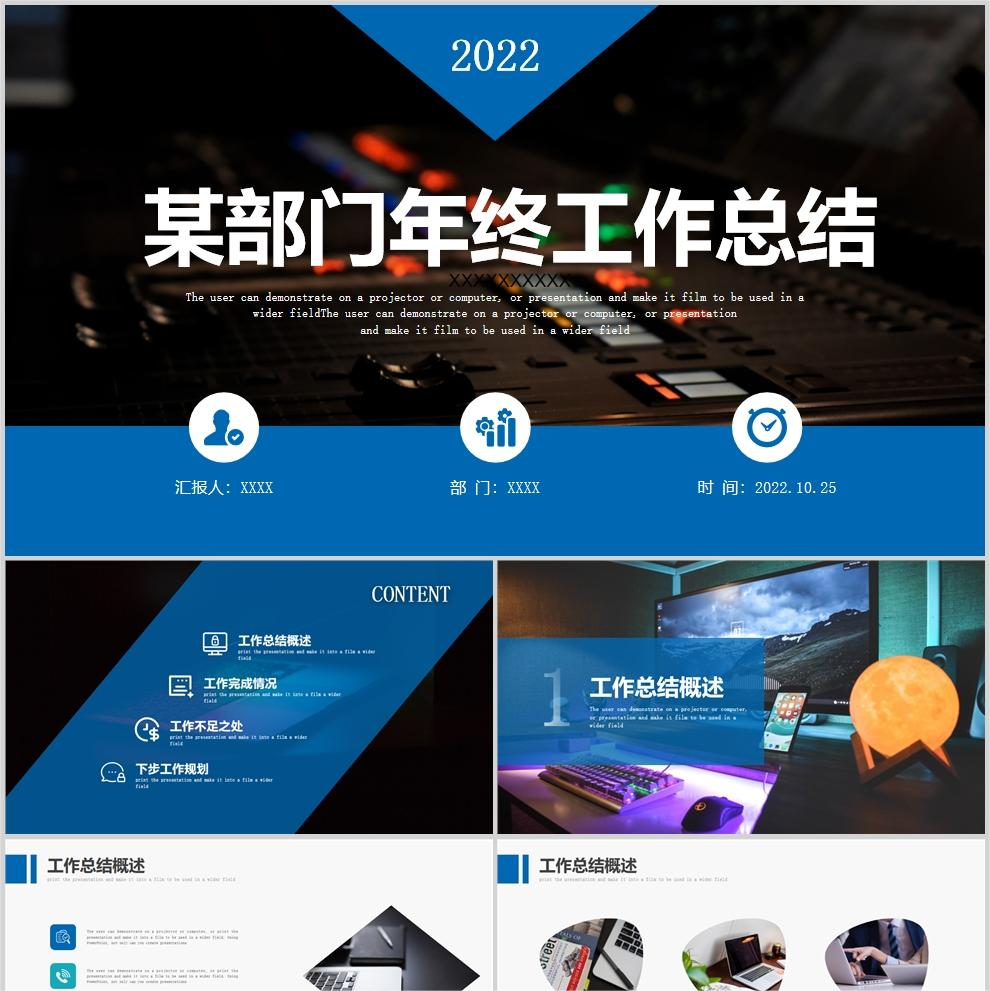 【免费】蓝色部门年终工作总结PPT模板