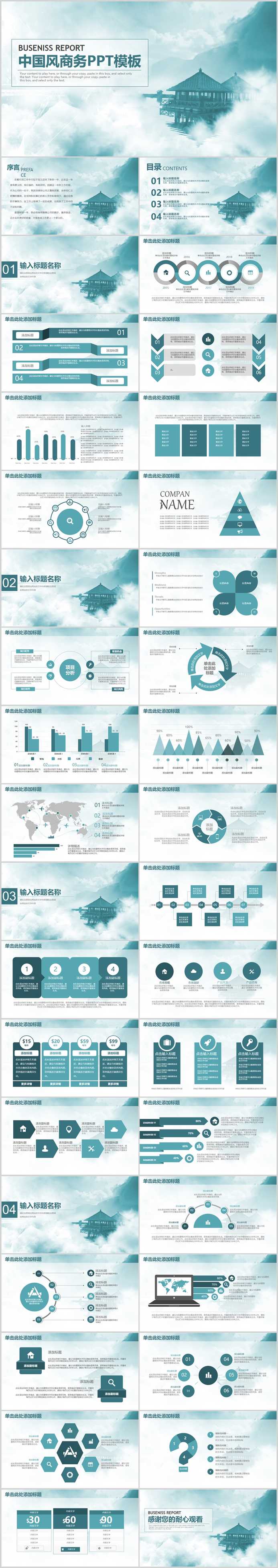 【免费】墨绿色中国风商务PPT模板