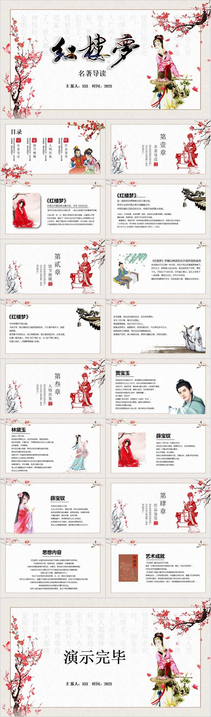 【免费】红楼梦读书笔记PPT模板