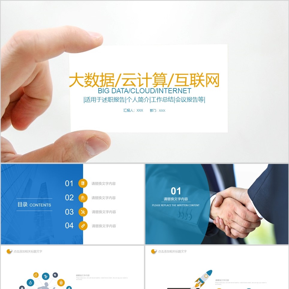 【免费】蓝色商务汇报述职报告工作报告PPT模板