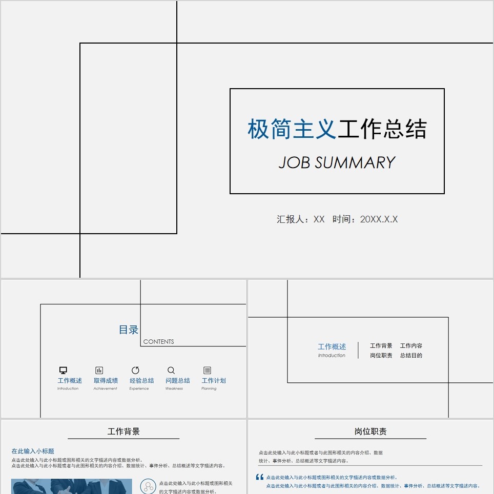 【免费】白色简约风商业计划 工作总结工作汇报PPT模板