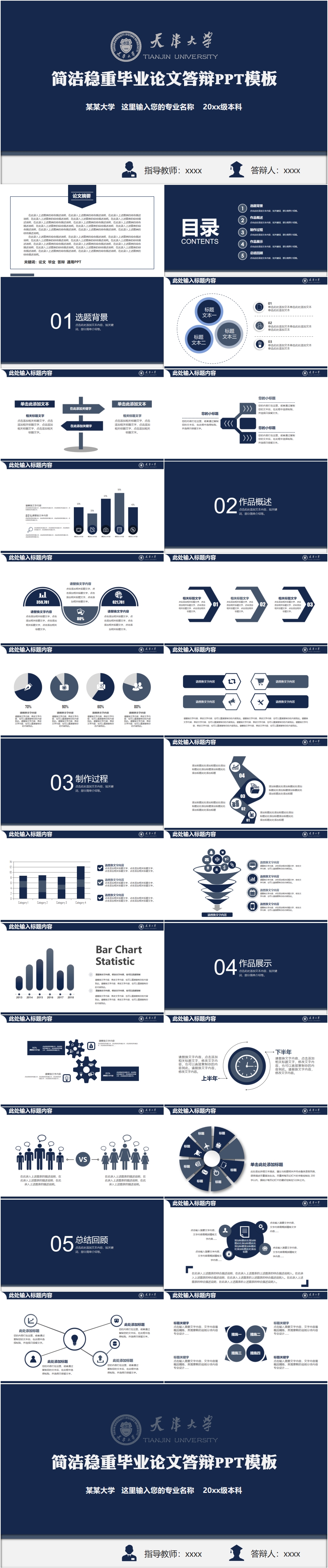 【免费】深蓝简洁稳重毕业论文答辩PPT模板
